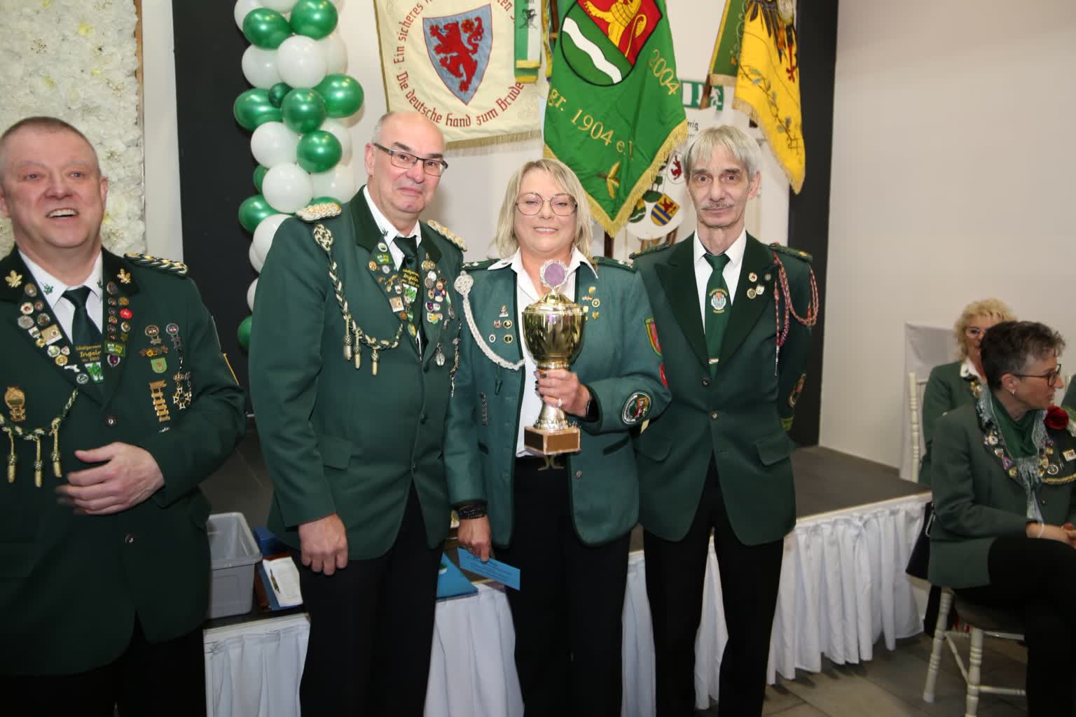Bevor es zu den Ehrungen der Könige ging, gab es noch Überraschungen für drei Schützen, die durch ihre langjährige Arbeit im Verein besonders ausgezeichnet wurden. Jürgen Paduch, Sieglinde Meyerhoff und Wolfgang Hampel bekamen jeweils einen Orden für ihren großartigen Einsatz in der Schützengesellschaft. Genaue Informationen findet man bei den Bildern.