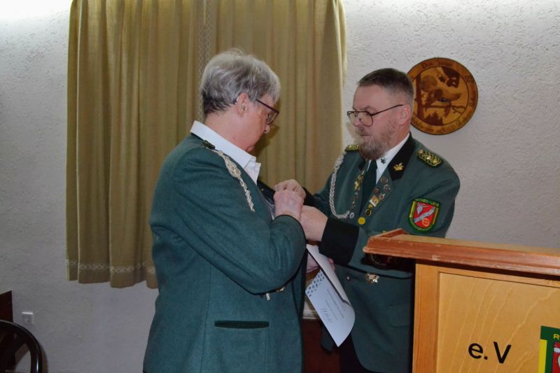 Anschließend erfolgte der Bericht des Schießsportleiters Wolfgang Hampel. Auch bei den Erwachsenen gab es einige Erfolge zu verzeichnen und auch für 2026 sind viele sportliche Aktivitäten geplant. Astrid Möller erhielt endlich ihre Jahreskette für ihre unermüdliche Teilnahme am Trainingsgeschehen.